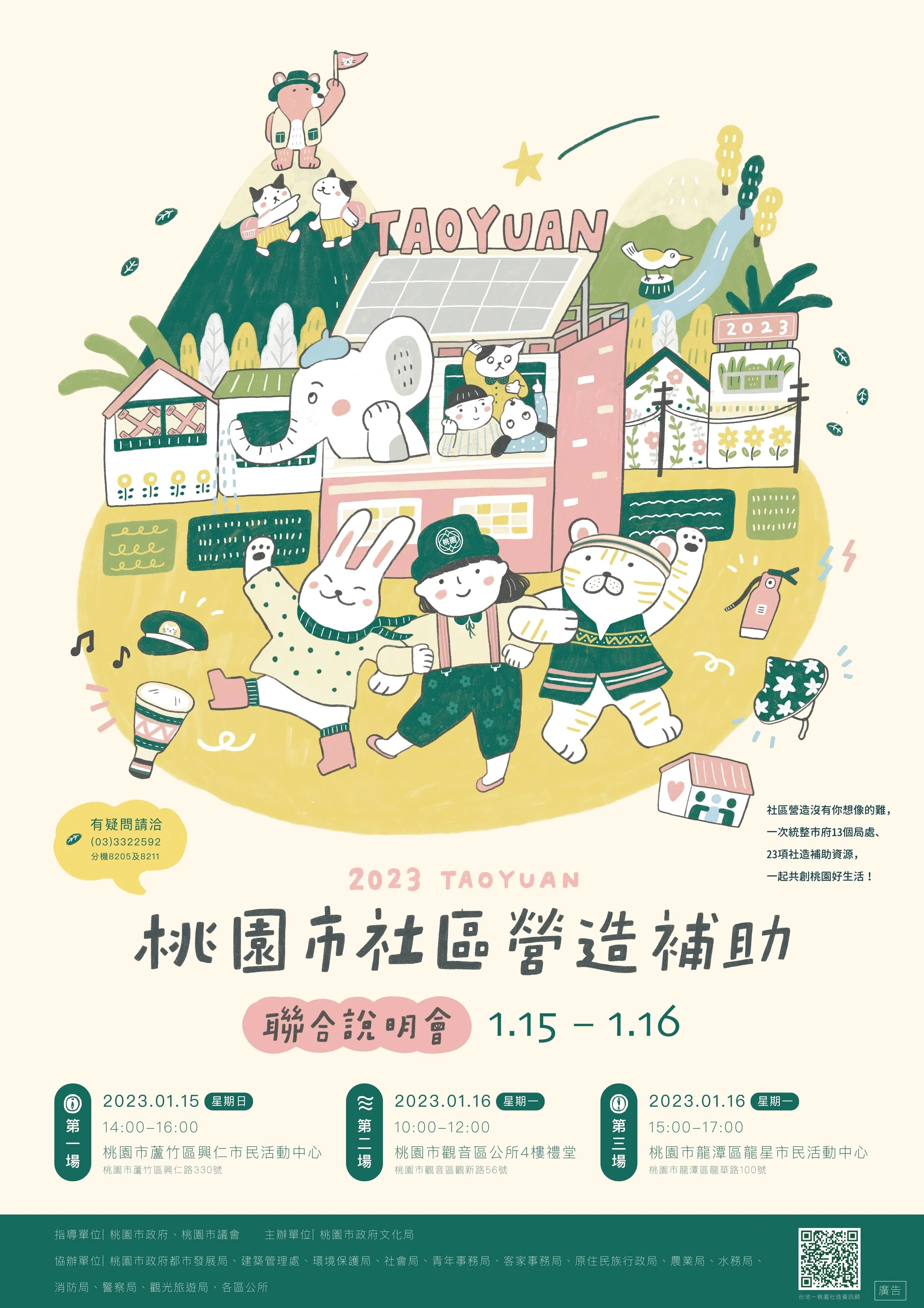 Poster design for a government-led community grant event in Taoyuan.