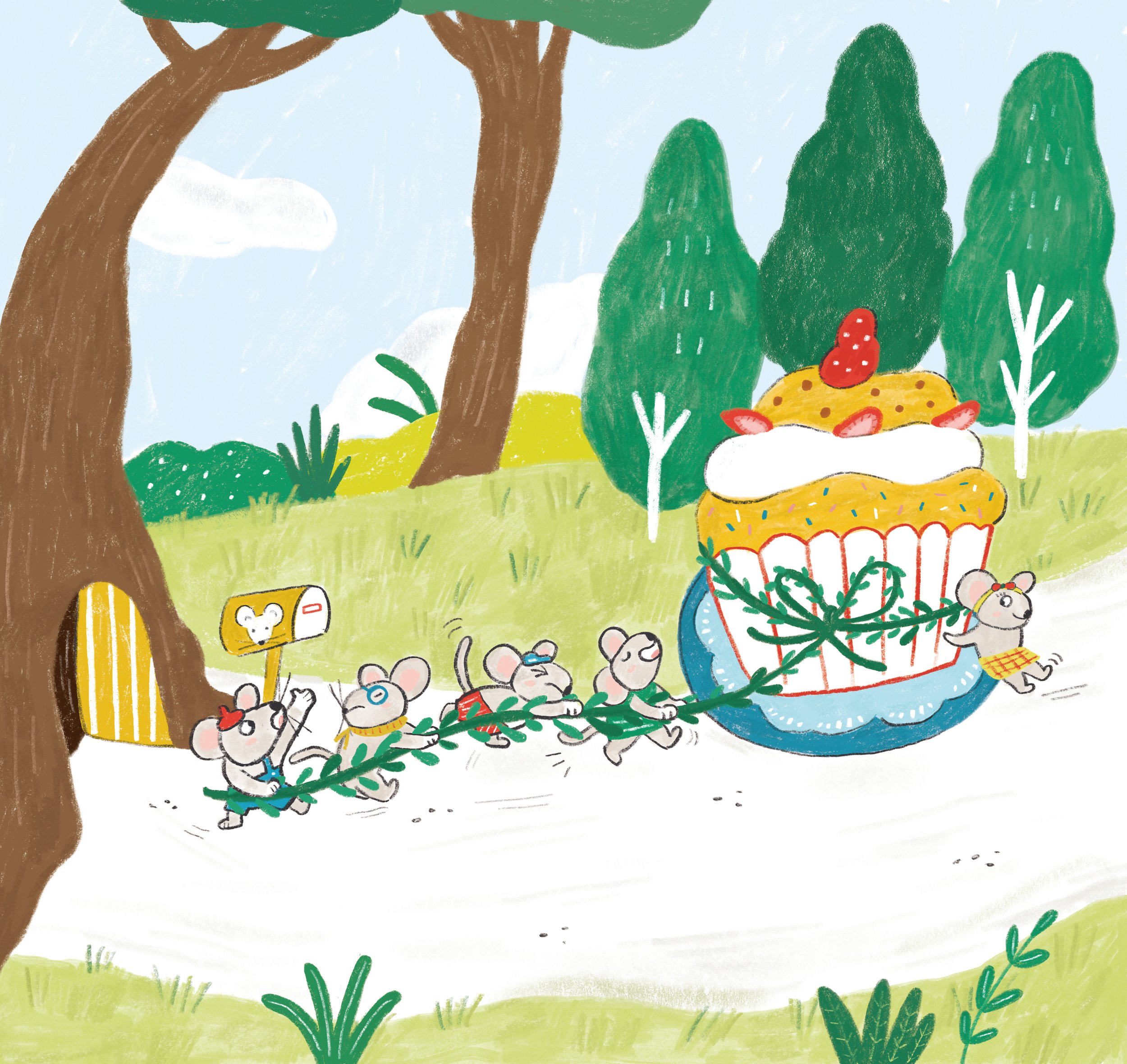 This picture book tells the charming story of a group of mice working together to deliver a giant cake. The story emphasizes friendship, cooperation, and celebration—with bright colors and gentle shapes that bring joy to every page.